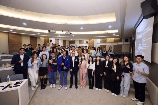 Ansari以一句「我們活在多樣性中」作為演講開場,帶領學生進入他的跨文化成長背景。他出生於德國的印度裔家庭,從小在多元文化交織的環境中生活,並在德國、法國及瑞典完成學業,培養深厚的全球化視野。此外,他提到自己精通德語、英語、法語、印地語及西班牙語,這些語言能力成為跨文化溝通的重要工具。他表示:「我一直都知道自己會從事連結人與文化的相關工作。」這些經歷成為他職業生涯的堅實基石。接著Ansari回顧職業生涯,談及自己在學生時期積極參與實習與社區服務,累積豐富的實務經驗。他特別分享一個參與講座時的故事,當時他抓住機會與講者建立聯繫,進而獲得一份實習工作,最終完成在美國的碩士論文。他強調:「儘管一開始沒有汽車產業的相關背景,但擁有學習熱忱與正確的心態,是克服挑戰的關鍵。」在與學生的互動中,Ansari提出一個發人深省的問題:「如果有機會去國外工作,你會願意嘗試嗎?」這個問題立刻激起學生的熱烈討論。他隨後分享自己從德國前往印度的工作經歷,並表示:「對我而言,答案是肯定的。這樣的選擇可能改變你的人生,帶來未知的可能。」他鼓勵學生勇於接受挑戰,積極探索未來更多可能性。此外,Ansari還談到多樣性在企業管理中的重要性。他以Volkswagen Taiwan為例,指出公司40%的員工為女性,充分展現多元背景及性別平權的實踐。他鼓勵學生保持探索精神,並表示:「質疑自己的選擇是成長的一部分。如果答案不明確,可以退一步嘗試新的可能性,並再以全新視角回過頭來審視。」他進一步提醒學生,選擇導師時要尋找能提供真誠建議的人。活動尾聲,Ansari邀請全場學生一起自拍留念,場面氣氛溫馨愉快。隨後林士淵與政大校園霍特獎委員會成員共同上台,感謝Ansari的精彩分享,並頒發感謝狀以表彰他對學生的啟發與貢獻。本次精彩活動在熱烈的大合照中圓滿落幕,相信已為學生帶來深刻啟示與對未來職涯的全新思考。